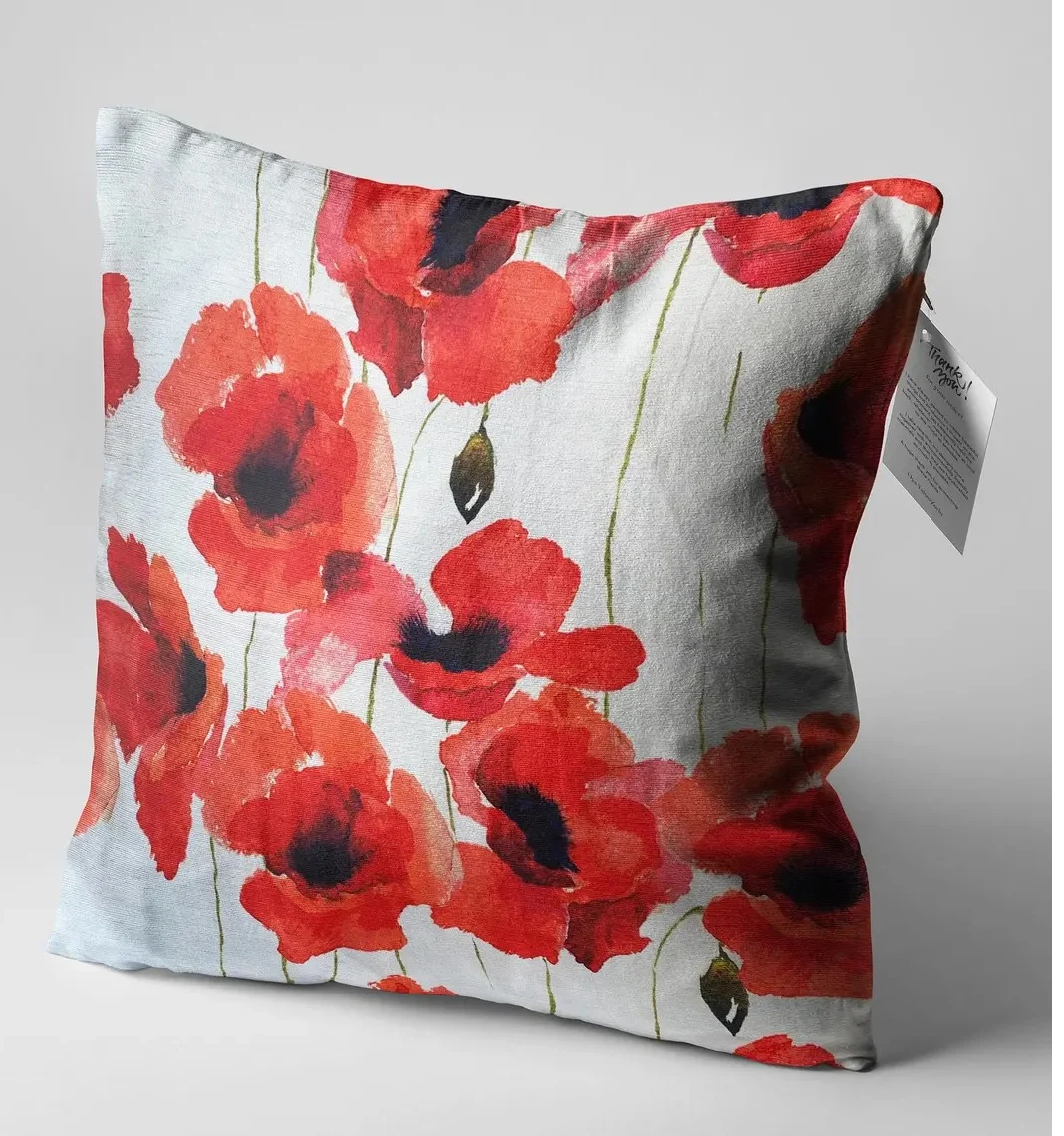 Product Name: Red Poppy Field Throw Pillow Cover 18x18 Inches