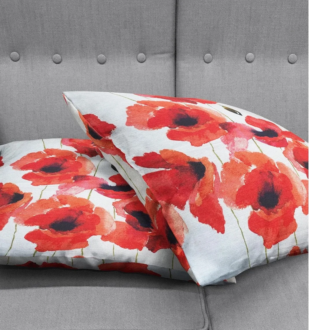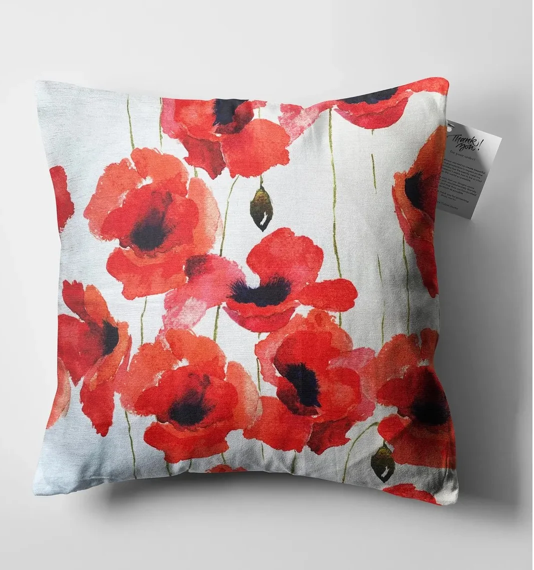 Description: The poppy pattern on this throw pillow cover brings a cheerful and warm summer feeling. The vibrant red flowers seem to be blooming under the sunlight, creating a space filled with vitality. This pattern is an excellent choice for refreshing a room, turning it into a relaxing and inspiring place.